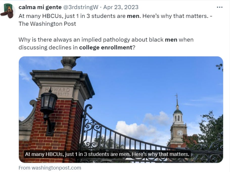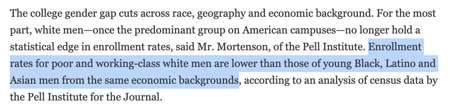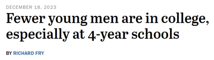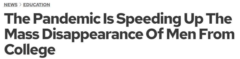 Most of the bluecheck unpacking of the collapsing male college enrollment story focuses on how worrisome it is that these men won't espouse elite political opinions