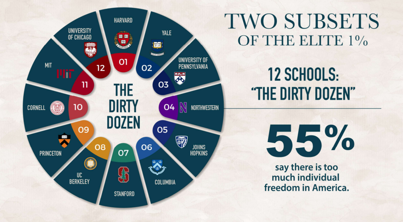 What’s more, is that amongst this 1% ‘elite’, there is an even more radicalized subset Rasmussen calls the ‘super-elite’, which are characterized by primarily attending one of twelve identified elite schools: