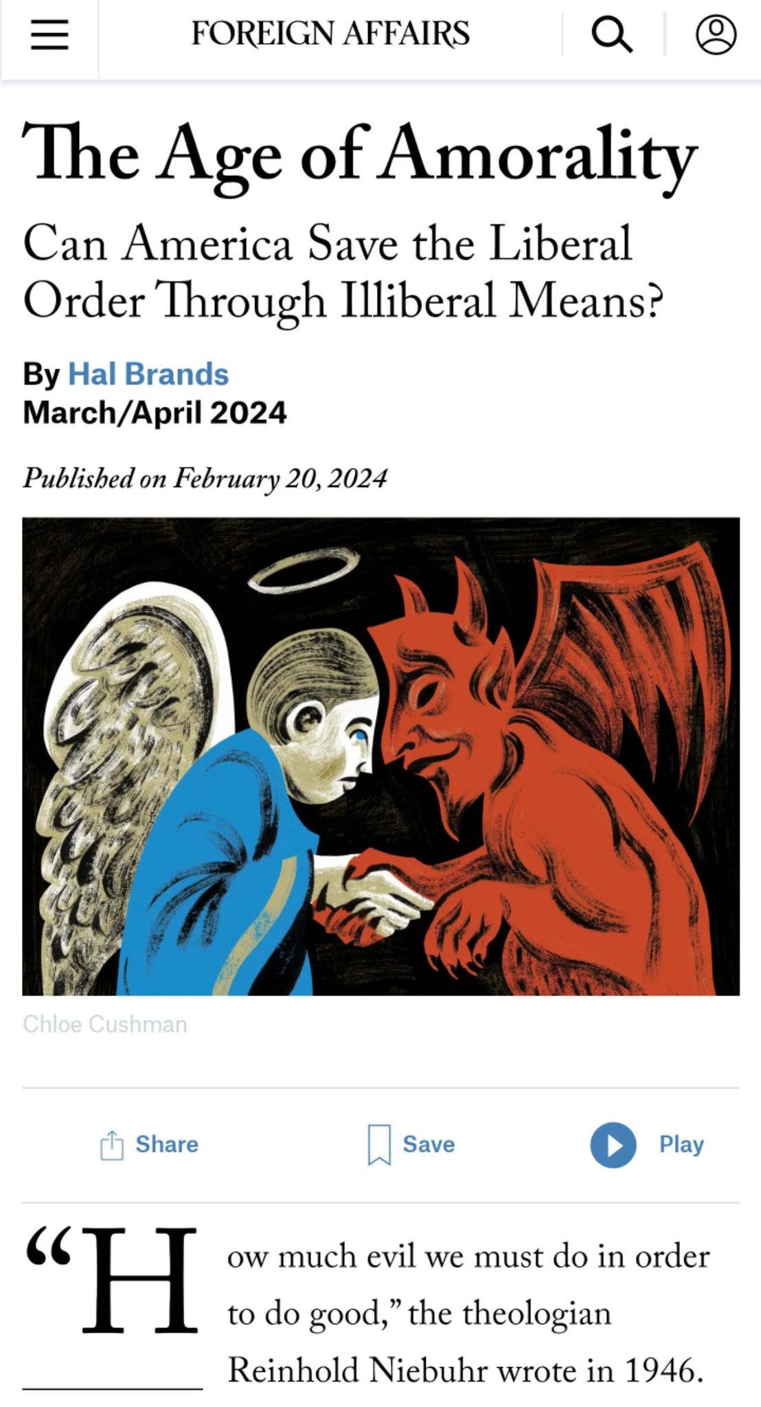 The article is a burlesque travesty of hypocrisy: it belabors the point about Russia and China’s putative ‘aggression’ and ‘illiberal’ policies—like the Ukraine ‘invasion’—while cretinously ignoring U.S.’ own far more numerous transgressions, invasions, and occupations of various sovereign states, not to mention the current facilitation of full-blown unmitigated genocide in Gaza, for which the U.S. just delivered another huge batch of bombs to Israel as of this writing. China and Russia’s elections too have proven far more democratic and ‘liberal’ than that of the phony U.S. electoral ‘production’, which saw an obvious stolen ‘victory’ for a reviled candidate in 2020, or even that of today’s charade of the coordinated invasion of millions of illegals for the purpose of upending another “democratic” election in 2024. The breathless jeremiads of establishment footsoldiers are nothing more than desperate backstops meant to levee and dike the crumbling edifice of their superannuated Old Order.