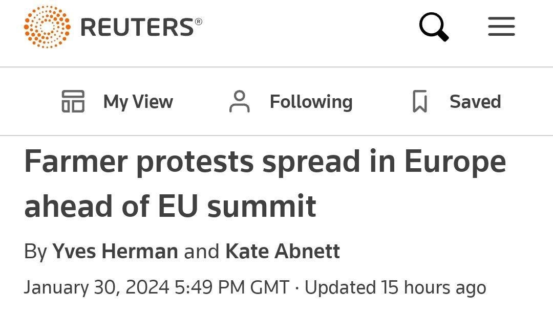In the meantime, European capitals have been blazing—supermarkets in dystopian Paris empty owing to the widespread farmer strikes: