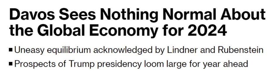 The world right now is terrifying to the Davos Class. Everything is going wrong, the populists have entered the inner sanctum and are openly saying "you guys are the problem your doom is coming," and there's a feeling the neoliberal intl. system is at the edge of the abyss.