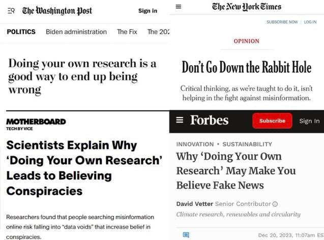 The people who lectured us on the dangers of reading outside the lines are now terrified that we’ve ignored them, and continue to think for ourselves.