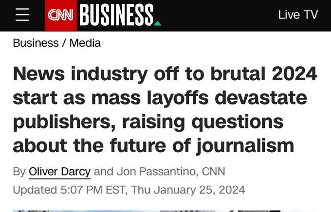 This came on the heels of sweeping layoffs in the entire news media and publication/print industry: