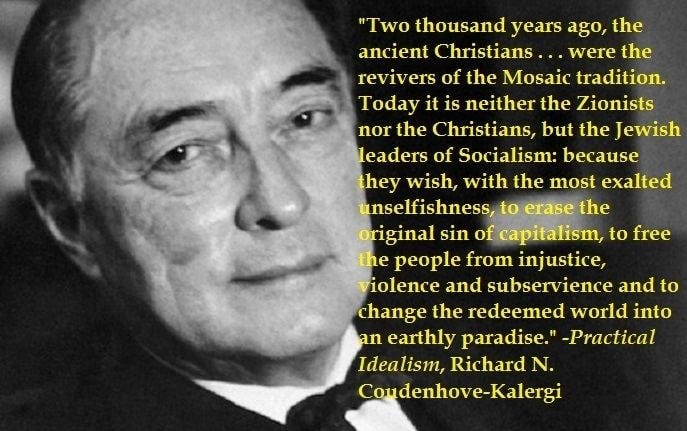 For those unfamiliar, I’ll give a brief precis. Richard von Coudenhove-Kalergi was an elite goldenboy and ‘pioneer of European integration’ who was instrumental in the foundation of the later European Union, which of course we know to be the precursor to what was envisioned by the ruling class as the final one world government system.