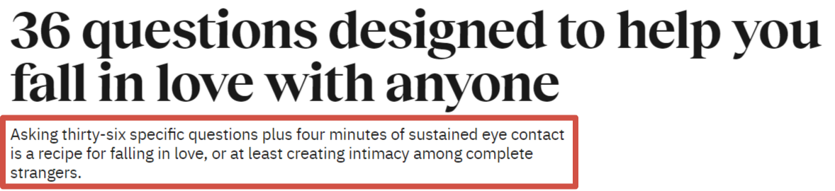 I began by describing how the top percentile of writers distinguish themselves from the dilettantes by an irrepressible need for always finding that one small, unexpected slice of magic, which subverts a standard turn of phrase or cliche into something uniquely personal; a stamp of individuality that asserts one’s singular experience of the world. These are the triggers we empathize with, which urge the kinds of responses in us seen in the 36 question love experiment. Your story is my story; or at the least, I see traces, echoes of it in your experience.