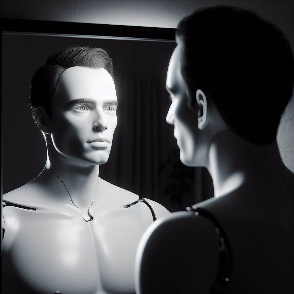 AI will undoubtedly continue getting better and better at mimicking us, but so long as it lacks physical form through which to experience all the whirlwind ups and downs and agonies of flesh, it’s doubtful it can ever transcend its imitative pretenses beyond mere digital Kabuki. The day will come, however, in the distant future, when the AIs could be fitted with biosynth bodies, enhanced by the flesh and blood of hormone exchange and sympathetic nervous response with all its impelling urgencies, changing the equation forever.