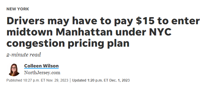 To clarify, the NYC congestion pricing creates vast zones in the heart of NYC where you have to pay $15-20 to enter during certain times of day, which is already on top of the $17+ tolls needed just to enter Manhattan itself. Eventually the plan is to tie all this into carbon allotments as a way to coerce people into living their life according to WEF strictures; for instance, you won’t be able to enter the offlimits zone if you purchased any carbon-producing ‘meat’ products, for which your carbon social credit score will be deducted.
