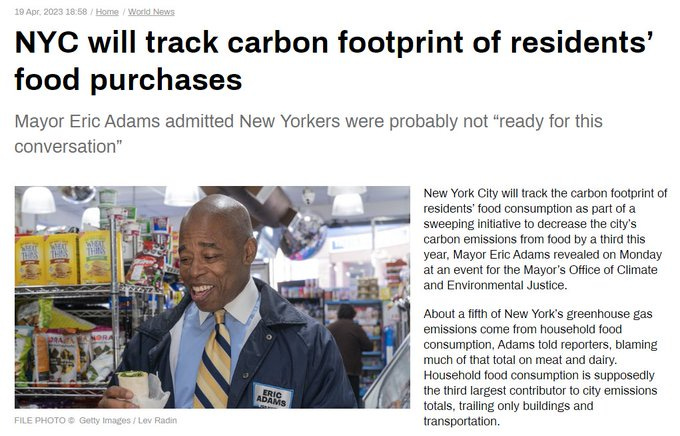 Cities like New York are already planning to begin tracking the food purchases of their residents as part of a plan to reduce each citizen’s carbon footprint by 33%.