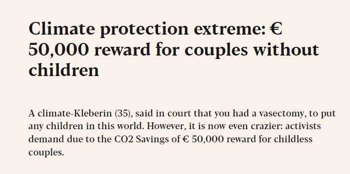 "In Germany it is proposed to sterilize people to protect the climate.