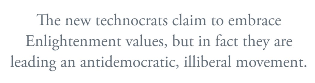 The new technocrats are ostentatious in their use of language that appeals to Enlightenment values—reason, progress, freedom—but in fact they are leading an antidemocratic, illiberal movement. Many of them profess unconditional support for free speech, but are vindictive toward those who say things that do not flatter them. They tend to hold eccentric beliefs: that technological progress of any kind is unreservedly and inherently good; that you should always build it, simply because you can; that frictionless information flow is the highest value regardless of the information’s quality; that privacy is an archaic concept; that we should welcome the day when machine intelligence surpasses our own. And above all, that their power should be unconstrained. The systems they’ve built or are building—to rewire communications, remake human social networks, insinuate artificial intelligence into daily life, and more—impose these beliefs on the population, which is neither consulted nor, usually, meaningfully informed. All this, and they still attempt to perpetuate the absurd myth that they are the swashbuckling underdogs.