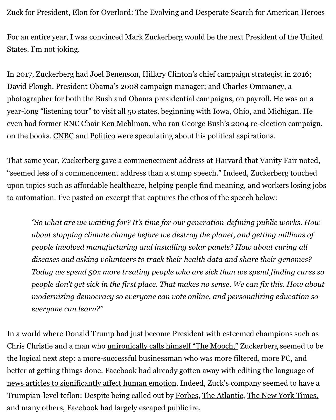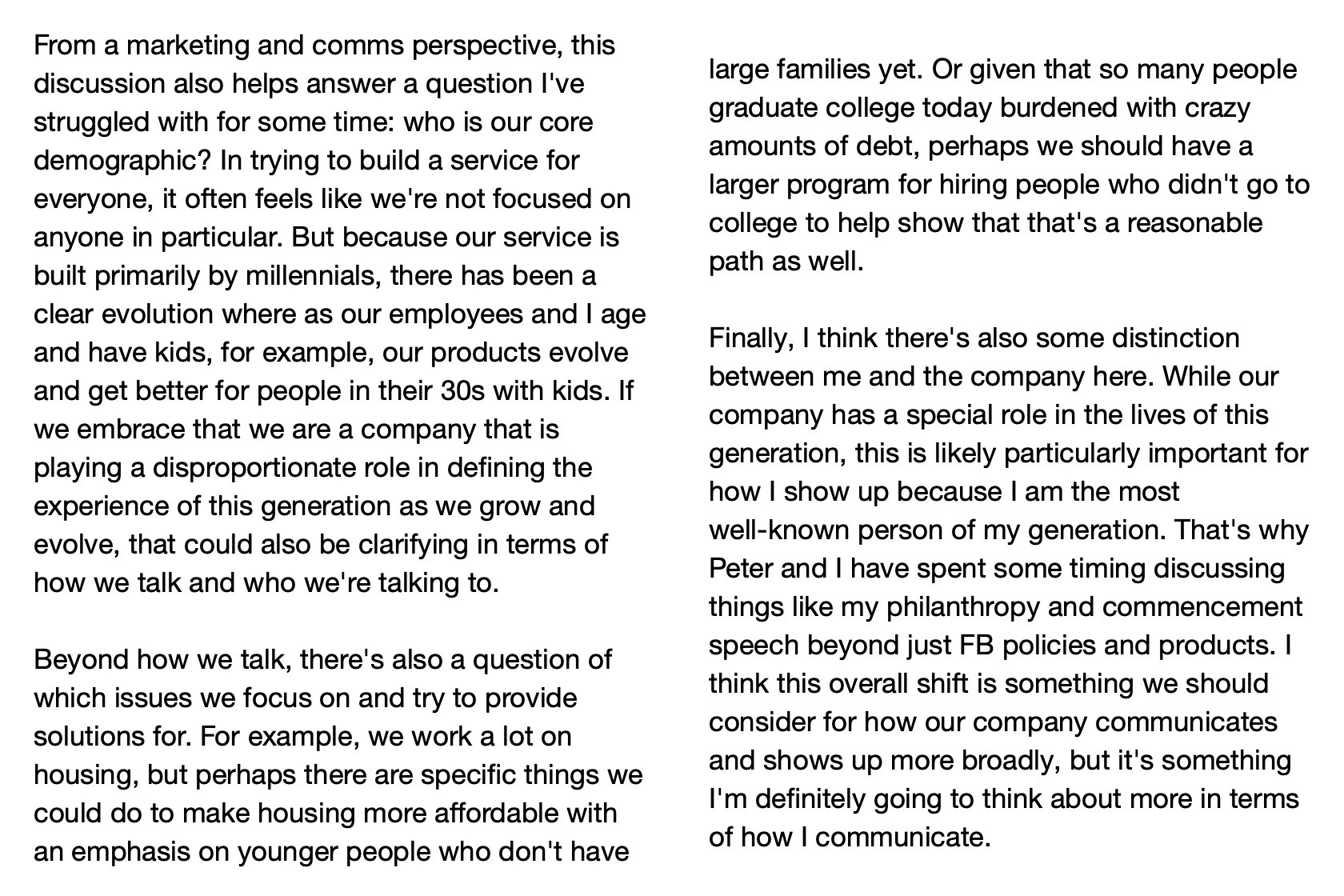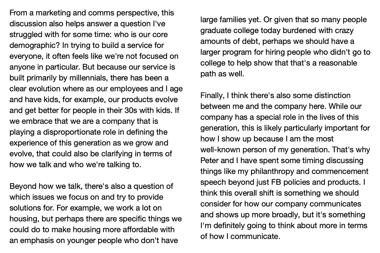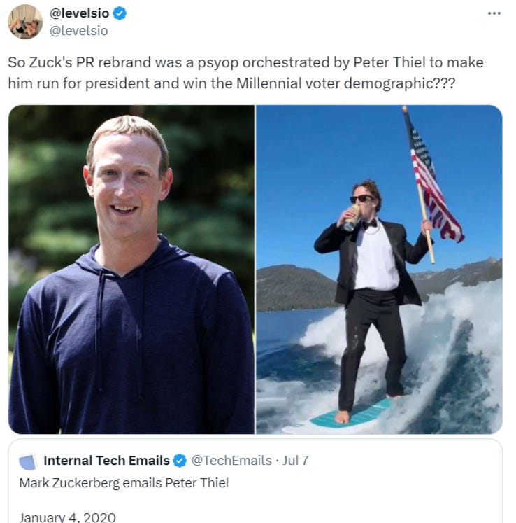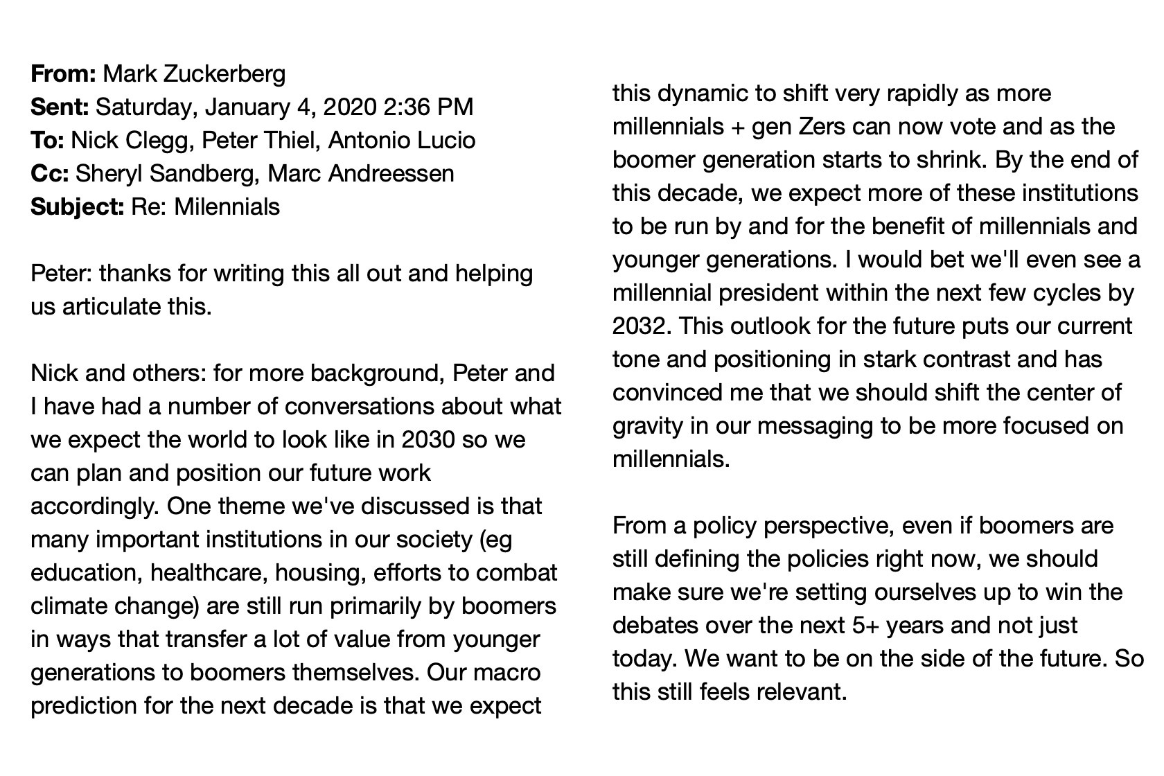 The above is a leaked exchange between Zuckerberg and Peter Thiel, wherein Zuckerberg focuses on his vision for a shifting societal landscape by 2030, and calls himself the most well-known person of his generation.