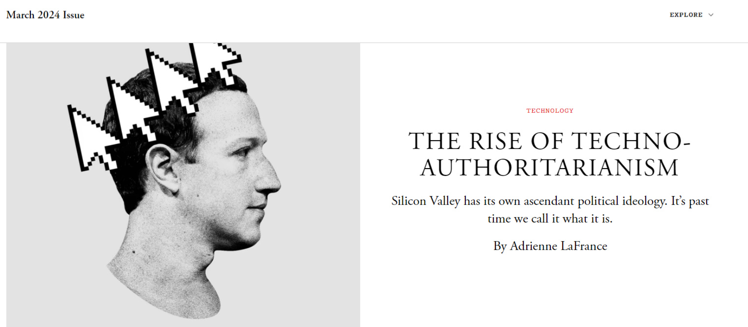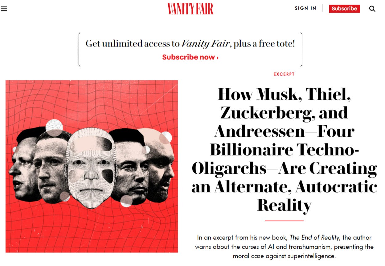 Last year, Vanity Fair similarly sounded the alarm on Silicon Valley’s accelerating drive toward techno-autocracy
